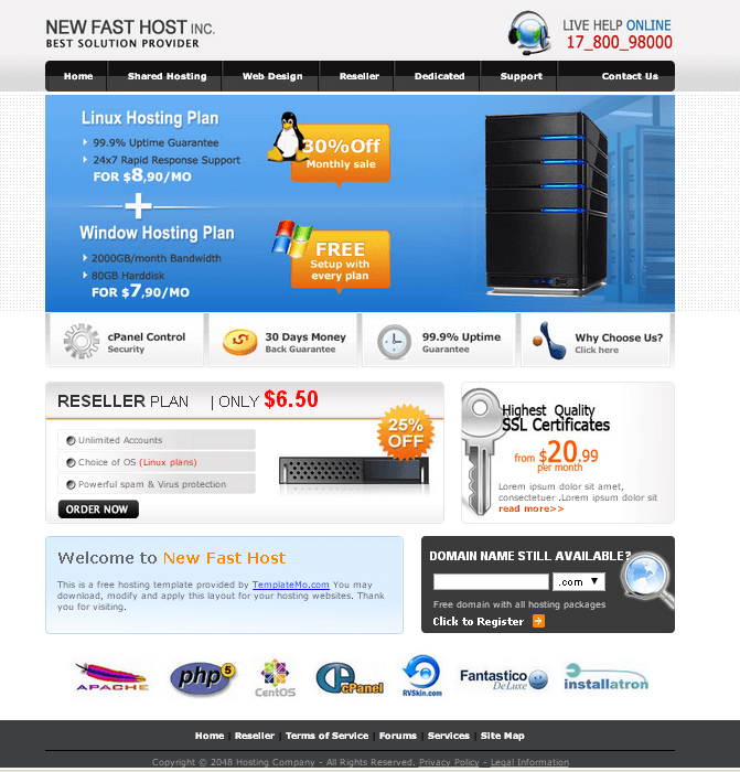Pensando em ajudar nossos clientes que estão começando no ramo de hosting, a SuelHost oferece inteiramente GRÁTIS nos planos de Revenda de Hospedagem alguns Templates para Web Host. Confira os Templates abaixo, fique sabendo quando adicionamos novos templates, promoções e novidades acessando nosso Blog.
